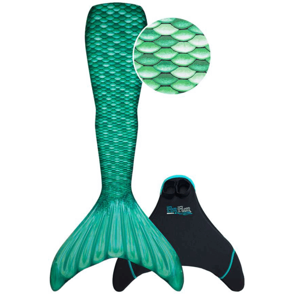 Verander in een prachtige zeemeerminprinses met de zeemeerminstaart Celtic Green van Fin Fun! Deze staart heeft een mooie mix van speelse schubben in mintgroen en felgroen.